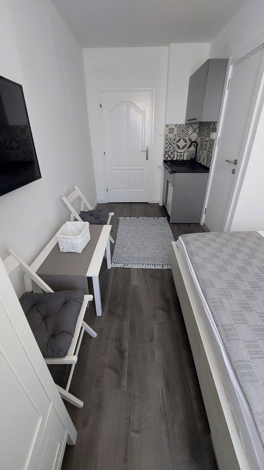 Studio br. 5 sadrži čajnu kuhinju, TV/D3, inverter klima uređaj, prostor za odlaganje.